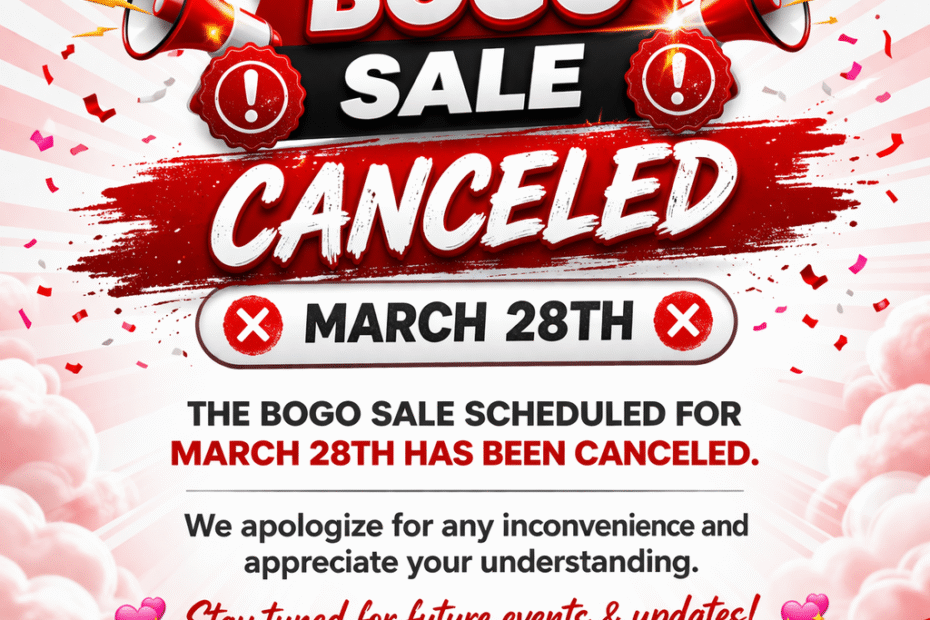 I have decided to cancel my BOGO Sale as I have no interest from anyone that they are coming. I will reschedule when the new catalog comes out. Sorry for the inconvenience! It’s also Last… BOGO Sale has been canceled!