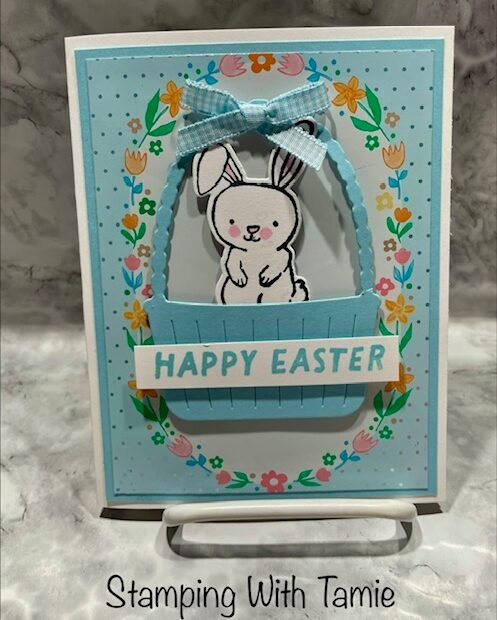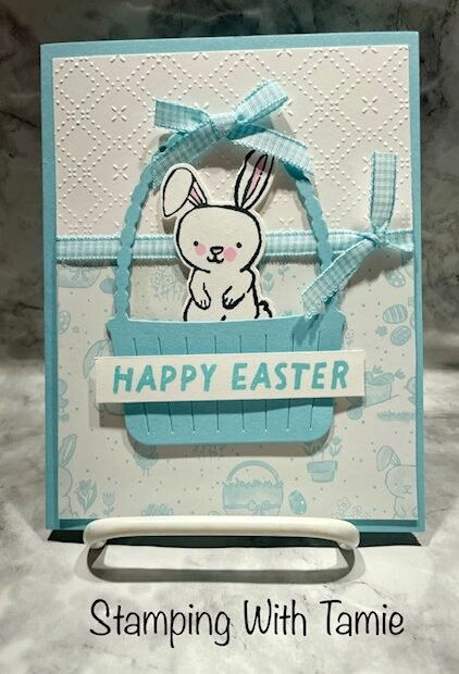 Hello Stamper Friends, Tonight, I have another Easter card using the Easter Joy DSP and Easter Basket Stamp Set. Material I used: Balmy Blue Cardstock #146982 $14.00 5-1/2″ x 8-1/2″ score @ 4-1/4″, Basic White… Easter Joy Designer Series Paper