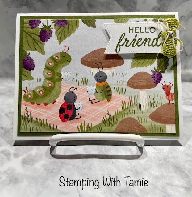 Wow, we just got home and it was snowing so bad we could hardly see the road. Tonight, I have a card using that adorable Cute as a Bug designer series paper, I love this paper.