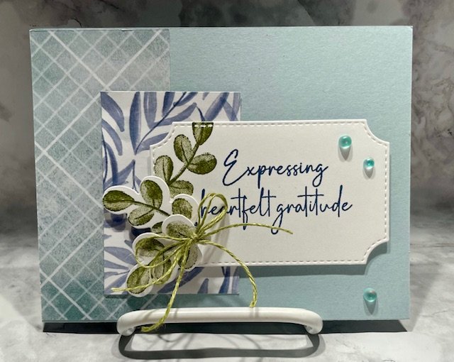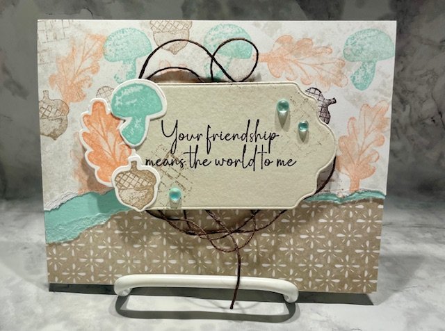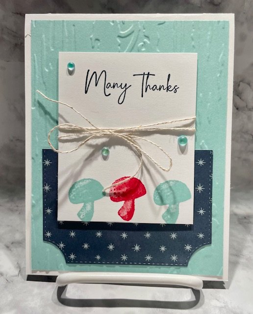 Tonight, I finally got around to putting my make-n-takes from this month’s Rubber Queens meeting. We used the Gathering Moments Bundle #165980 $56.50. Early Espresso & Old Olive Linen Thread #165986 $9.00. Frosted Iridescent Dots #165766 $9.00. The DSP used is the Peaceful Garden #165917 $12.50. To order any of these items just click on the Shop With Tamie button.