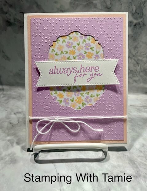 Hello Stamper Friends, Working on cards for next month, as it will be here before we know it! Material Used: Thick basic White Cardstock #159229 $17.00 5-1/2″ x 8-1/2″ score @ 4-1/4″, Petal Pink Cardstock… Lovely & Beautiful Specialty Paper