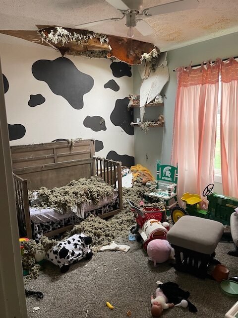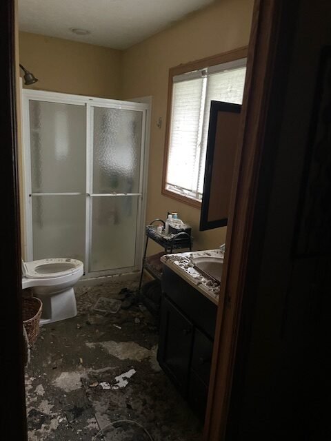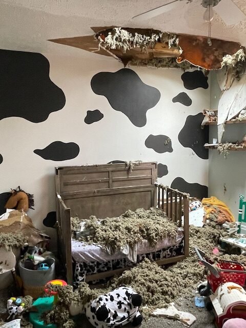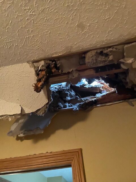 After Linda and I left the bathroom ceiling came down. The ceilings are full of water, and I have a feeling they are going to have more holes by morning. I just pray for them when they are working in there that no one gets hurt. Please say a little prayer for them please and thank you!