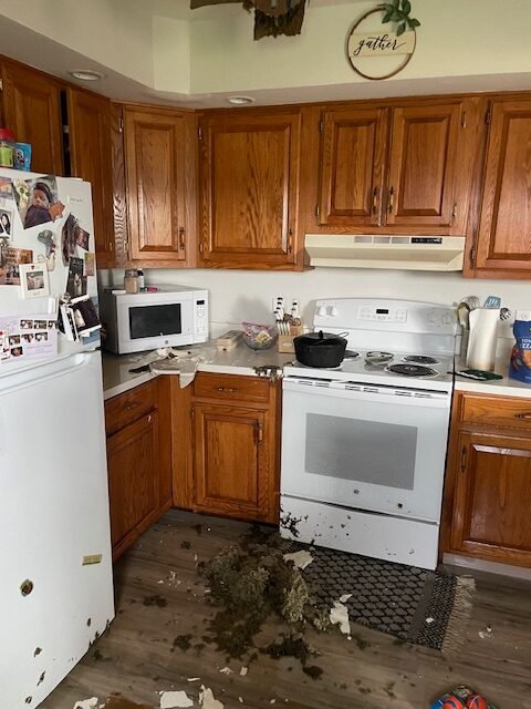 They did get it tarped and Linda and I got the inside cleaned up.